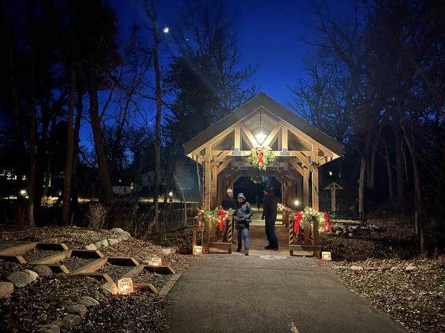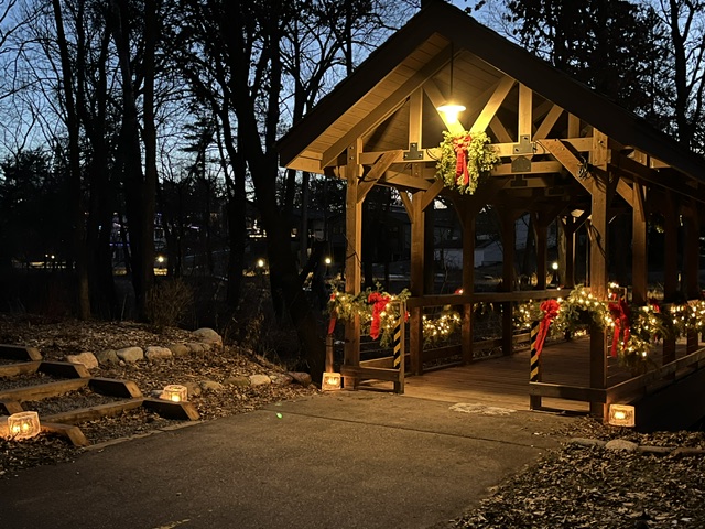 Bright lights and holiday decorations provided by members of the Runze family set the mood for the evening. Donations in memory of Griffin Runze, who passed away in 2017 at the age of 21, made the bridge possible.