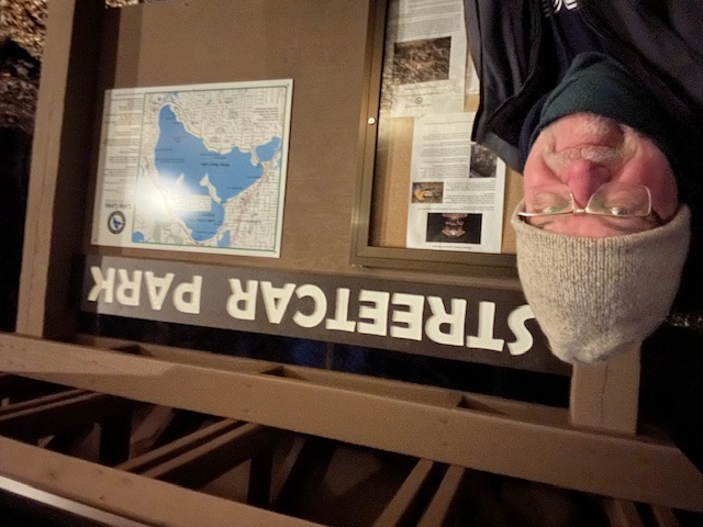With participants in the Lake Links Association's second annual Winter Stroll gathered at the bridge, local resident Cindy Rasmussen described efforts she and other neighbors are leading to transform the area into a premier city park. Stroll participants were able to view firsthand the progress to date, which includes installation of benches and picnic tables, removal of invasive species, and addition of a kiosk and a natural playground.